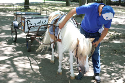 さて、近所の公園ではポニーが馬車を引っ張ります。
