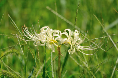 この土手に咲いていた彼岸花、白い花しか咲いてなかったんです。