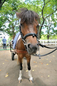馴染みの公園でポニーとご対面。