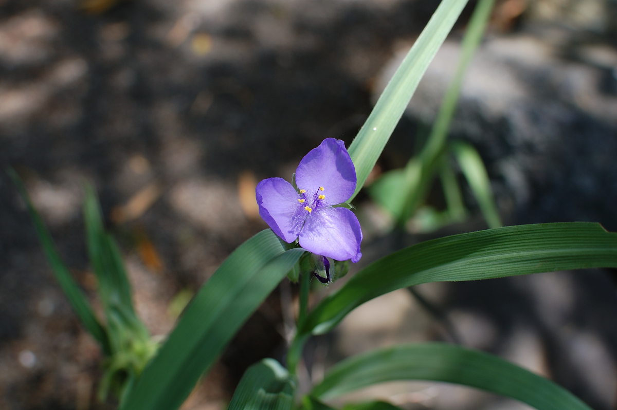 このムラサキツユクサ、好きな花のひとつです。深みのある紫色にテトラポットのように開いた花。これを見るとなぜか気持ちが落ち着くんです。