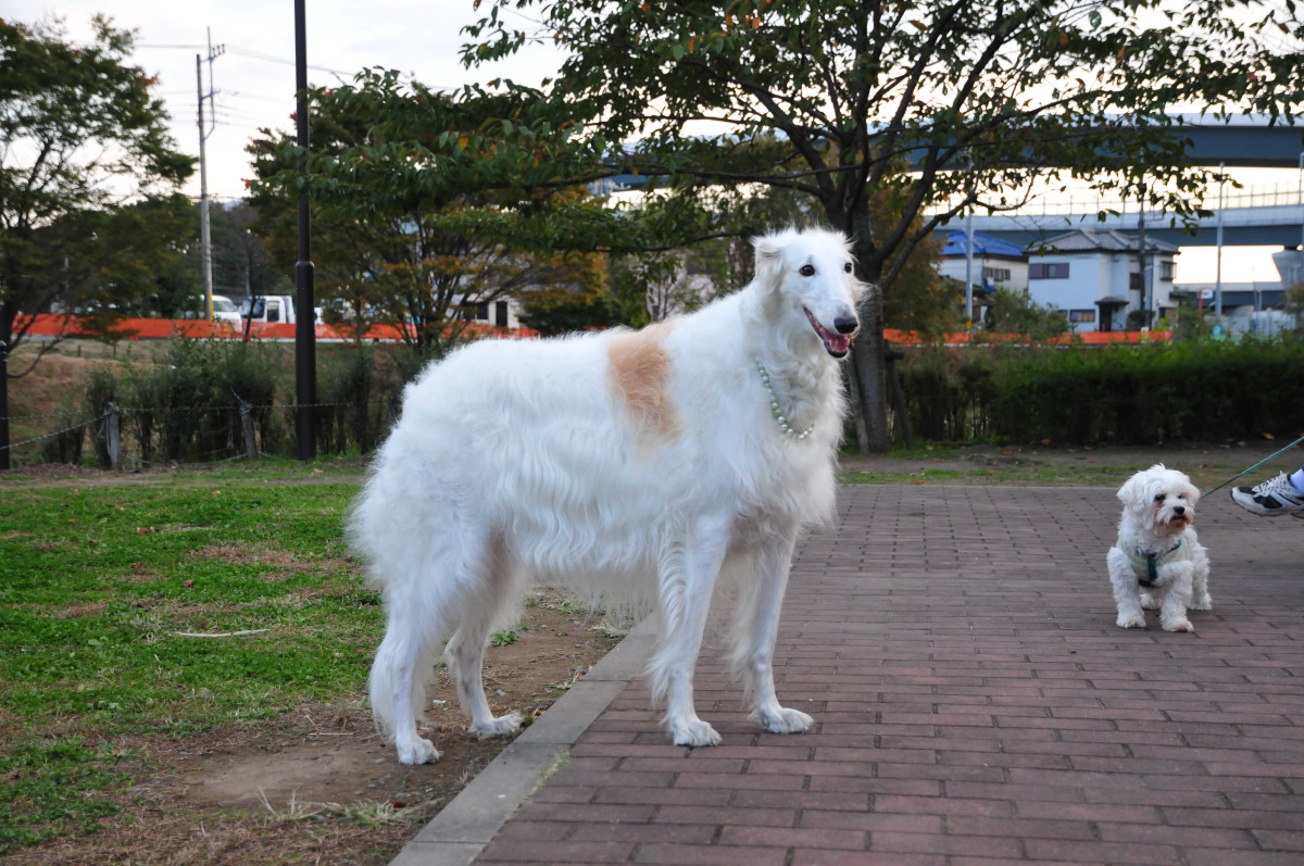 チワワやマルチーズがボルゾイさんの顔の大きさぐらい?