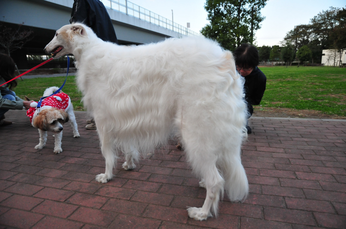 威勢のいい小・中型犬をよそにボルゾイさんはマイペース。