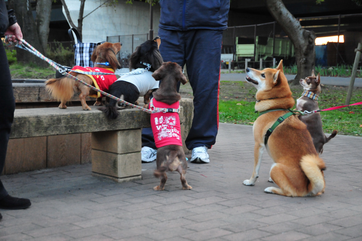 その時間帯にぞろぞろとお散歩わんこが集合する。