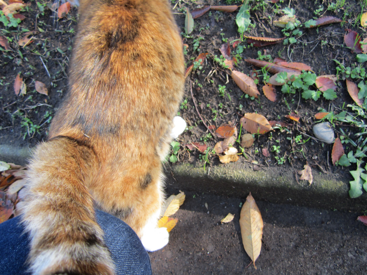 この縞三毛ちゃん、ホントに気まぐれでなかなか近づくことはないのですが、今日はまとわりつかれました(;^_^)