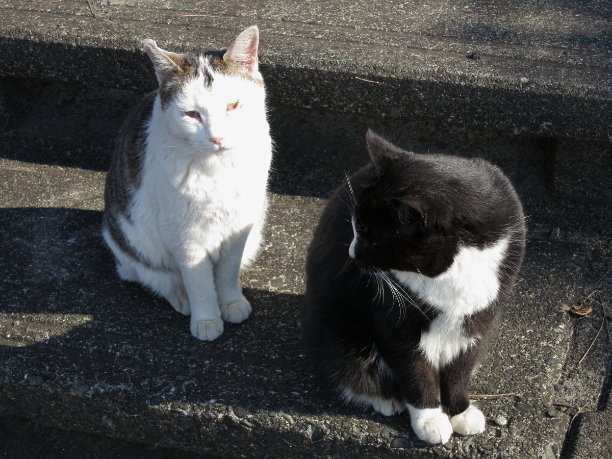 『いつもの土手』にいるクロとタマのきょうだい。彼らと会ってから5度目の年明け。