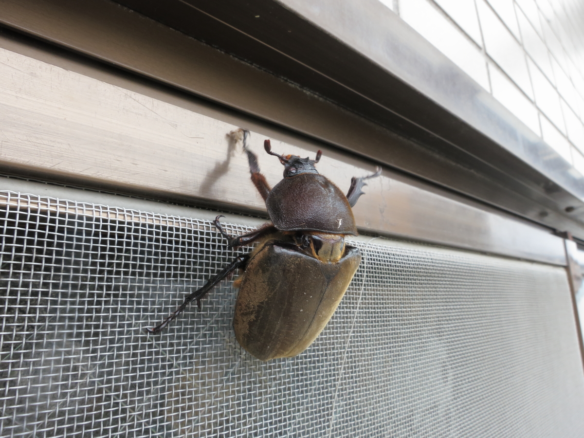 台風8号が九州に近づいた日、自宅の玄関前に不時着?したカブトムシ♀
