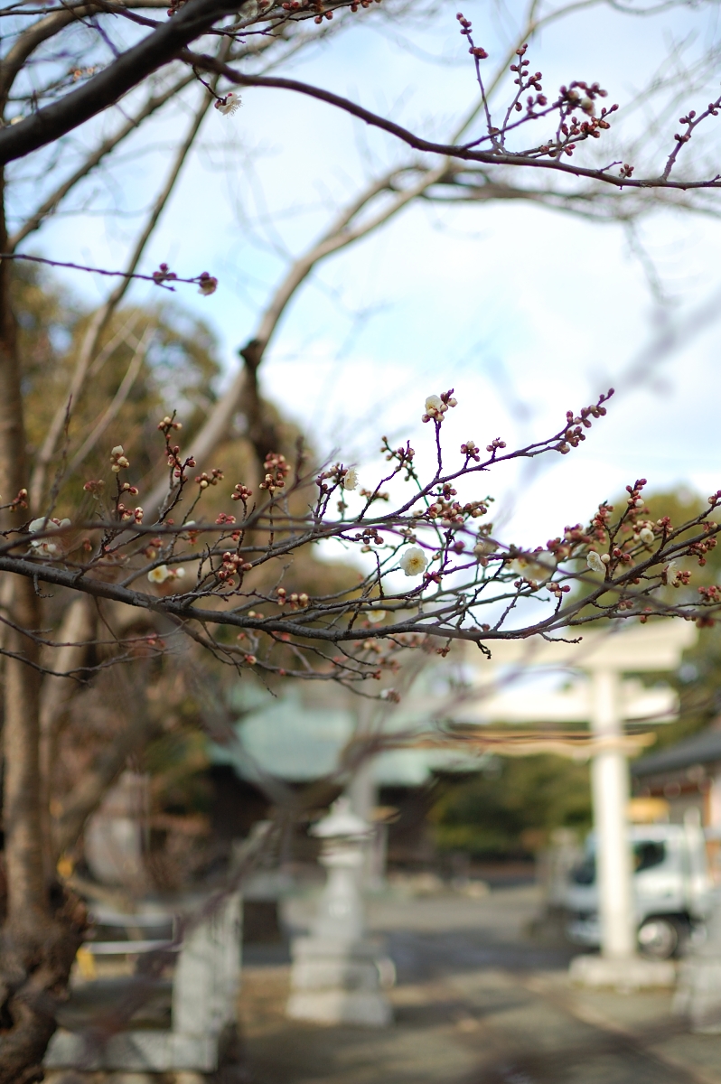 そろそろかなと思っていて、妙に温かい日だったので近所の神社に行ってみたら予想通り。